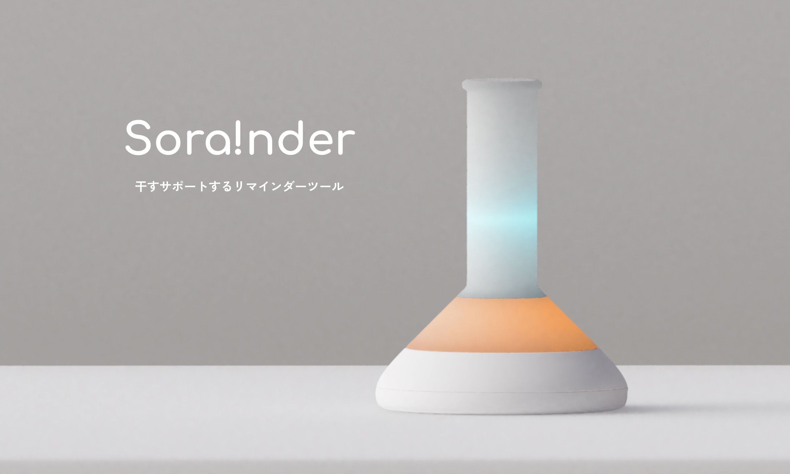 | sorainderはフラスコをモチーフにした、干すをサポートするリマインドツールです。 主な機能として、10時間先までの雨足をフラスコに滴る水滴のように表す天気取得、干しっぱな しを知らせるリマインドランプがあり、洗濯物が雨に濡れてしまうことや、取り込み忘れなどの失 敗を防ぎます。インテリアとして置ける愛らしいデザインが特徴です。 |