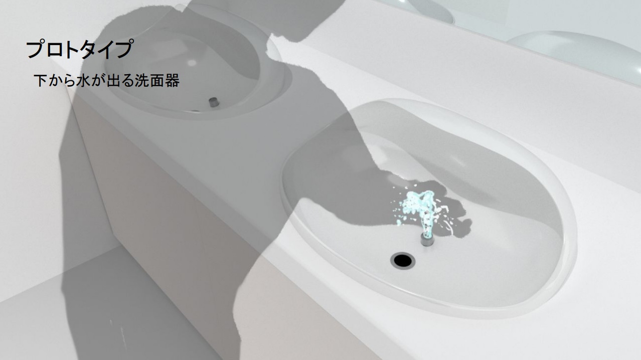 | トイレの洗面台には、人々が手を洗うことによって水滴が飛び散ってしまっている。その水滴の飛び散りは、次に洗面台を使用する人に対しては不快感につながることがある。そのような、共用の洗面台の飛び散りを飛ばさせないような新しいシェイプの洗面台を考案した。 |