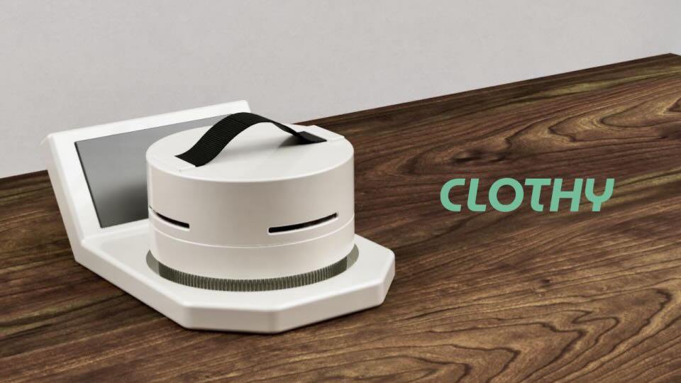 | CLOTHYは衣服用ハンディ掃除機です。内部のセンサが検知したゴミの種類や量などの情報は、グラフになって土台に取り付けられたパネルに表示されます。行動の結果がすぐ視覚化されることで、ユーザーはお手入れに取り組んだ実感を得られます。またCLOTHYは玄関に置いておけるサイズであり、帰宅後手軽に手入れに取り組むことができます。 |
