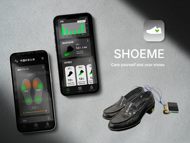 | ユーザーが「靴のお手入れ」を通して「自身の身体」もケアすることを促す、プロダクトの提案。 靴に搭載されたセンサーから歩行姿勢などユーザーの身体のデータ、ソールの劣化、湿度、使用頻度などから推測される靴の消耗が案内される。アプリを通じてその情報とお手入れや姿勢改善などの方法を提供し、ユーザーが靴と身体の「お手入れ」を意識する事を促す。 |