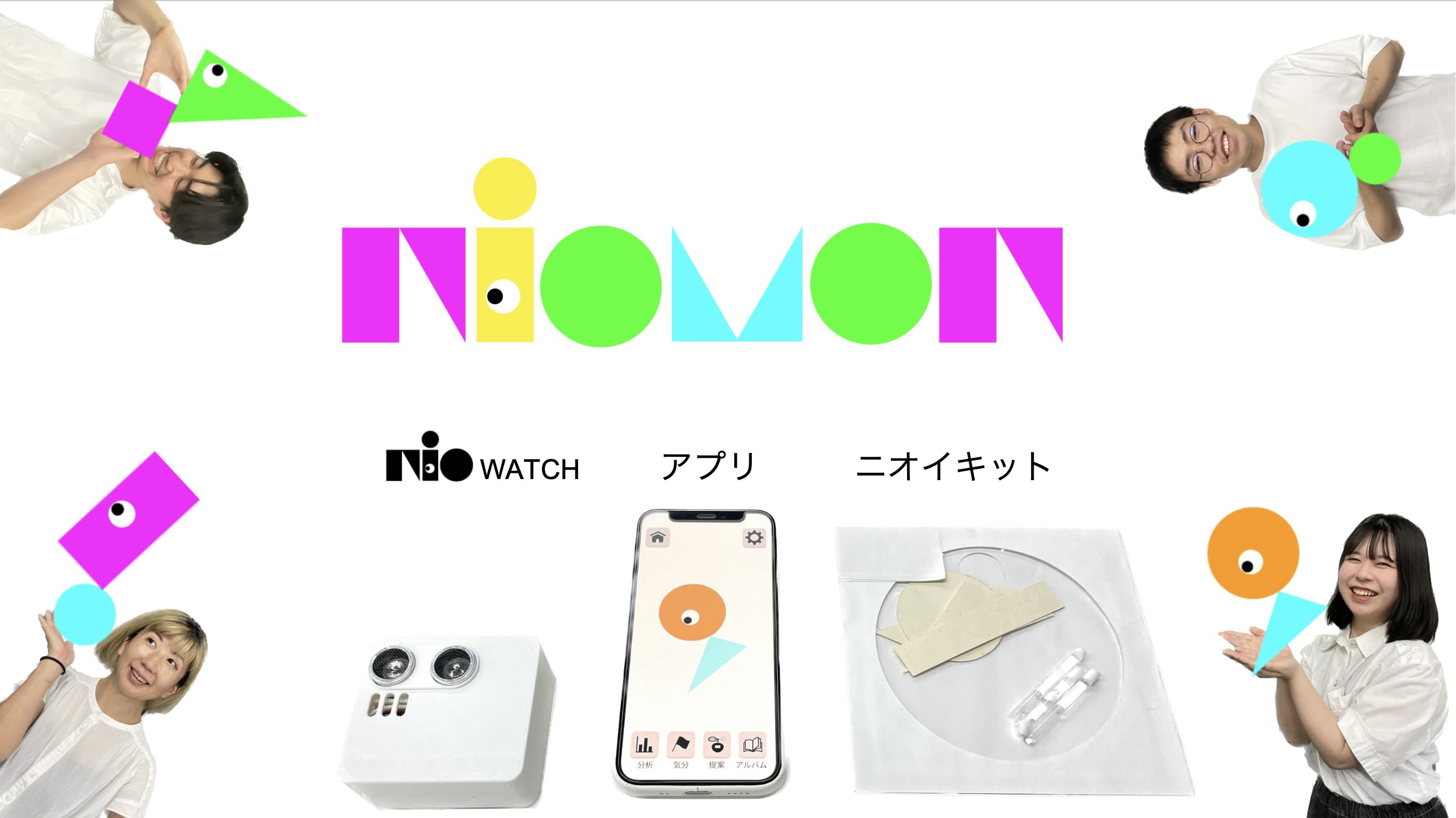 | 「ニオモン」は、nioウォッチによってニオイが可視化されたモンスター。ニオイキットを使ったアンケートに答えれば、その日の気分に合わせたニオイになれる製品をおすすめしてくれるよ。新たなニオイをまとえば、新たなニオモンに出会える。とってもかわいいニオモンたちと送る、「すきなニオイ」をまとう生活を、あなたに。 |